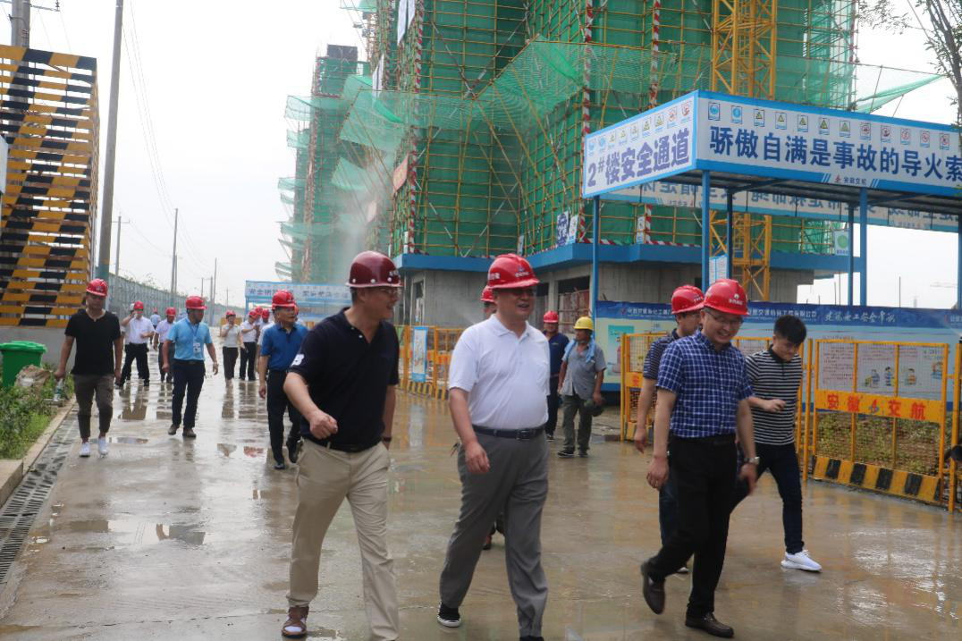 李庆宁副主任一行检查时代樾府一期工地的施工便道硬化、雾炮车和喷淋系统运行情况,工地道路已经硬化,移动雾炮车和外架喷淋系统正在向空中喷洒水雾,围挡喷淋在不断工作,裸露的土地上覆盖了防尘网。李庆宁副主任对项目部在扬尘治理上所做的工作给予了充分肯定。他指出,要加强日常管理,严格按照建设工地扬尘污染治理标准,常态化、高标准开展治理工作。