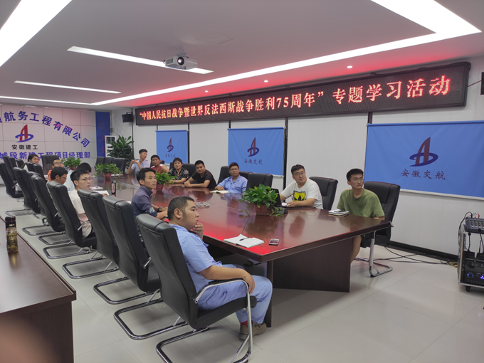 为了进一步弘扬伟大抗战精神,厚植爱国主义情怀,9月3日晚,安徽交航G329利辛绕城段新建工程项目部组织开展纪念“中国人民抗日战争暨世界反法西斯战争胜利75周年”专题学习活动。项目部全体职工参加专题学习。