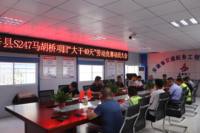 5月23日下午6点,利辛县S247马胡桥项目部组织全体职工召开安徽交航三届一次职代会精神宣贯暨“大干40天”劳动竞赛动员专题会议。会上认真传达学习了党委副书记、总经理方申柱作的职代会报告,让未参加职代会的同事了解交航公司过去一年的发展情况以及未来企业发展规划。
