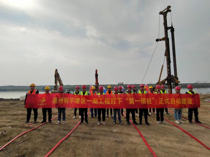 10月24日上午10时,亳州利辛港区工程项目现场人声鼎沸、彩旗飘扬、鞭炮齐鸣、烟花绽放,由安徽交航承建的亳州利辛港区一期工程项目打下“第一根桩”开工仪式隆重举行。业主代表、监理单位代表及项目部全体职工共20余人参加现场仪式。第一根钻孔灌注桩顺利开钻,标志着亳州利辛港区项目正式启动主体工程建设。