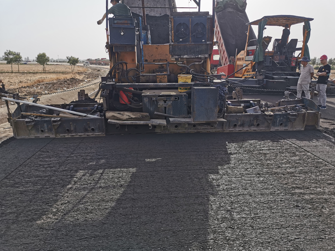 6月3日下午,在利辛S338省道,水泥稳定碎石面层试验段施工现场,随着摊铺机的一声轰鸣,第一车混合料缓缓地导入摊铺机内,利辛S338工程水泥稳定碎石面层正式拉开摊铺序幕。该摊铺段在K6+200-K6+500全幅,总长300米,压实厚度是18cm。
