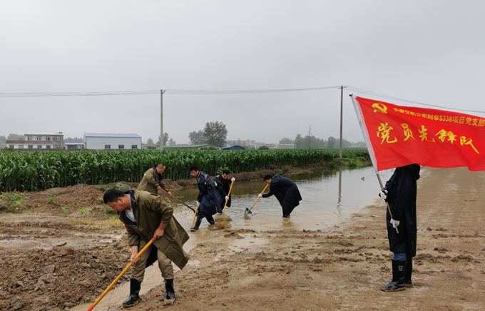 在项目党支部正确的指导下,党员先锋队、青年突击队身着雨衣,脚穿雨靴,手持铁锹挖沟排涝。经过一个半小时的突击挖槽,最终疏通了路基两侧积水。此次S338项目部党员先锋队和青年突击队的自救行动充分展现了一个党员就是一面旗子,一个支部就是一个战斗堡垒,彰显了党团先锋队的形象。