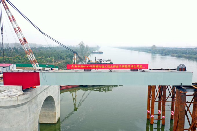 10月28日下午4点10分,随着一节重达53吨的钢箱梁稳稳地架设到马胡桥4#主墩支座位置上,利辛S247马胡桥项目首节钢箱梁架设宣告成功,标志着马胡桥进入钢箱梁“拼积木”阶段,主桥上部结构施工将进入“快车道”。