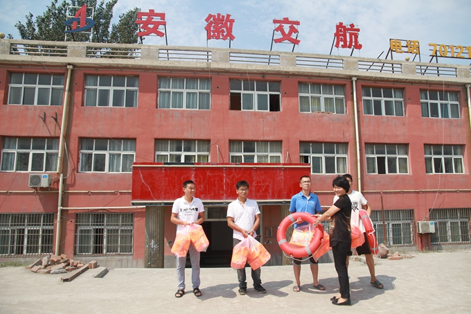钟德平一行在项目经理的陪同下查看了施工现场,听取了工程施工进度、质量安全等工作情况的汇报后,钟德平结合多年工作经验,深入浅出地为员工们讲解了防汛相关知识,强调安全防汛工作的重要性,并代表淮北市海事局向项目部捐赠了防汛救生器材。