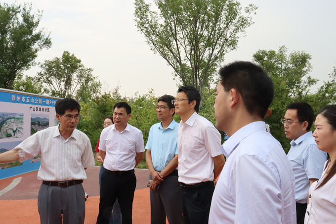 考察团首先到徐州市进行了考察,并在徐州市住建局相关领导的陪同下,通过实地察看、听取介绍等形式,对徐州市政绿化建设、河道治理、城市中心游园绿化、水系建设、管理绿化以及配套设施建设等进行了详细考察。次日,考察团实地考察了安徽交航公司承建的淮北市中湖矿山地质环境治理PPP项目,详细了解了中湖项目治理建设过程。