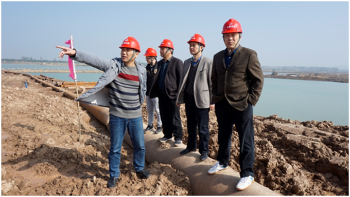 许总一行亲赴施工现场仔细查看了挖泥船等设备施工作业情况,认真听取了李总和项目负责人关于施工进度、融资投入等方面情况的汇报,详细询问了到目前为止的施工过程中遇到的困难和问题。