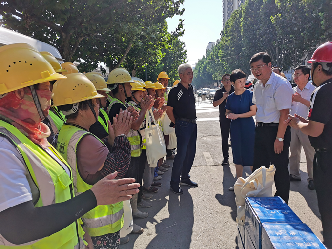 慰问中,人大及总工会代表对雨污分流施工现场的进度和质量给予了高度肯定,认真宣贯了市总工会编写的《淮北市高温天气作业人员关爱手册》,并强调高温季节是施工事故的高发期,针对高温天气作业的特点和风险,一定要给一线工人提供足够的、符合卫生标准的防暑降温饮料及必需的药品等,同时要制定好事故应急处置措施,抓好安全教育培训工作,落实安全技术交底工作。