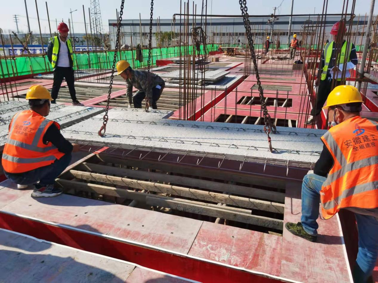 据了解,该项目是全椒建投公司首个装配式EPC项目,也是全椒县首个装配式项目,建筑面积约78000m2,装配率为30%,总投资约1.9亿元。此次首层叠合楼板的顺利吊装,标志着项目建设全面进入主体结构施工阶段。