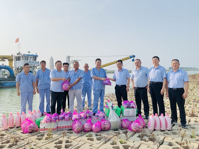7月19日,公司党委副书记、总经理杜海峰,公司党委委员、副总经理董双武赴引江济淮疏浚项目“皖蛟龙号”船队慰问“送清凉”
