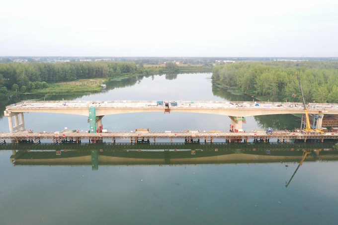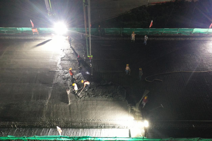 抓进度刻不容缓。为了尽快完成工期目标,项目部精心组织,合理配置施工力量,组织突击施工,以党员先锋为引领,团结带领广大职工满怀信心奋进新征程,成立党员突击队、青年突击队、工人先锋队,充分调动广大职工工作积极性与创造性,积极与班组沟通协调,凝心聚力,共同解决现场施工中遇到的问题。现场引桥箱梁预制架设、引桥和跨堤桥桥面系施工、主桥悬臂梁等多个工作面同时开展,一线人员夜以继日地奋战在工地上,施工现场留下他们忙碌的身影,迅速掀起了大干快上的工作热潮。邵渡口大桥主桥顺利合龙,主桥合龙混凝土浇筑并于9月14日下午6点10分浇筑完成,邵渡口大桥项目关键节点任务圆满完成。