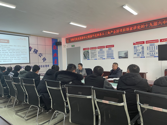 12月30日下午,公司党委副书记、工会主席黄国平赴泗县长三角项目部宣讲党的十九届六中全会精神。泗县长三角项目全体职工参加会议。