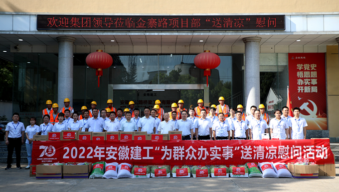 在安徽路桥金寨路项目,集团党委书记、董事长赵时运将慰问品送到一线职工手中,并和大家亲切交谈,细致了解大家的生活工作情况,叮嘱要注意劳逸结合,做好防暑降温工作。慰问中,他要求,要深入贯彻落实习近平总书记关于安全生产的重要指示精神,严格落实高温天气作业时间要求,进一步压实“五落实五到位”安全生产主体责任,加强对防暑降温等工作的组织领导、措施落实,以安全高效工作成果迎接党的二十大和建企70周年。