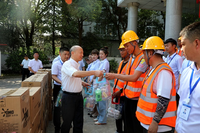 入夏以来各地持续高温,酷暑考验着坚守岗位的广大职工。为切实做好疫情防控常态化下安全生产和夏季防暑降温工作,为奋战在一线的职工送去清凉和关怀,7月中旬以来,结合集团党代会精神宣讲活动,集团控股及股份公司两级领导分赴建设一线,看望慰问冒着高温酷暑坚守岗位的职工,为他们送去绿豆、白糖、毛巾等防暑降温物品。同时,深入施工现场,了解督导项目建设、劳动竞赛、疫情防控、劳动保护等工作开展情况,鼓励大家积极应对疫情和高温影响,做好防暑用品配备以及高温情况下的生产安排,优质高效完成全年各项目标任务。