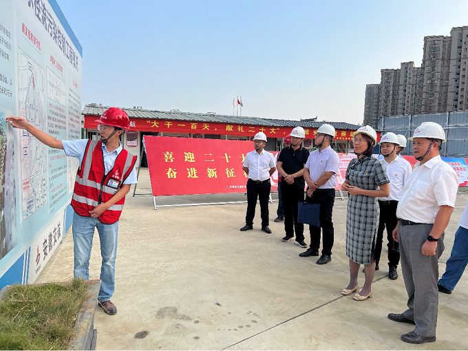 丁金颖一行在项目施工现场实地查看了项目建设情况,认真听取了关于工程概况、施工进度及安全生产工作情况的汇报,并现场就工程安全、质量等方面提供指导意见。