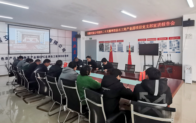 1月11日,公司党委副书记、工会主席黄国平赴泗县长三角产业园项目党支部开展党的二十大精神专题宣讲并调研指导项目工作。