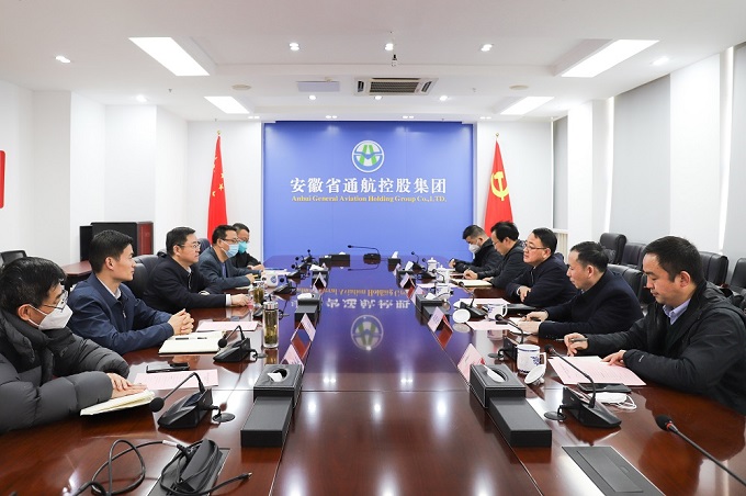 1月4日下午,建工控股党委书记、董事长杨善斌带队拜访安徽省通航控股集团党委书记、董事长汤斌,双方围绕开展战略合作进行座谈交流,并参观了飞行指挥中心。