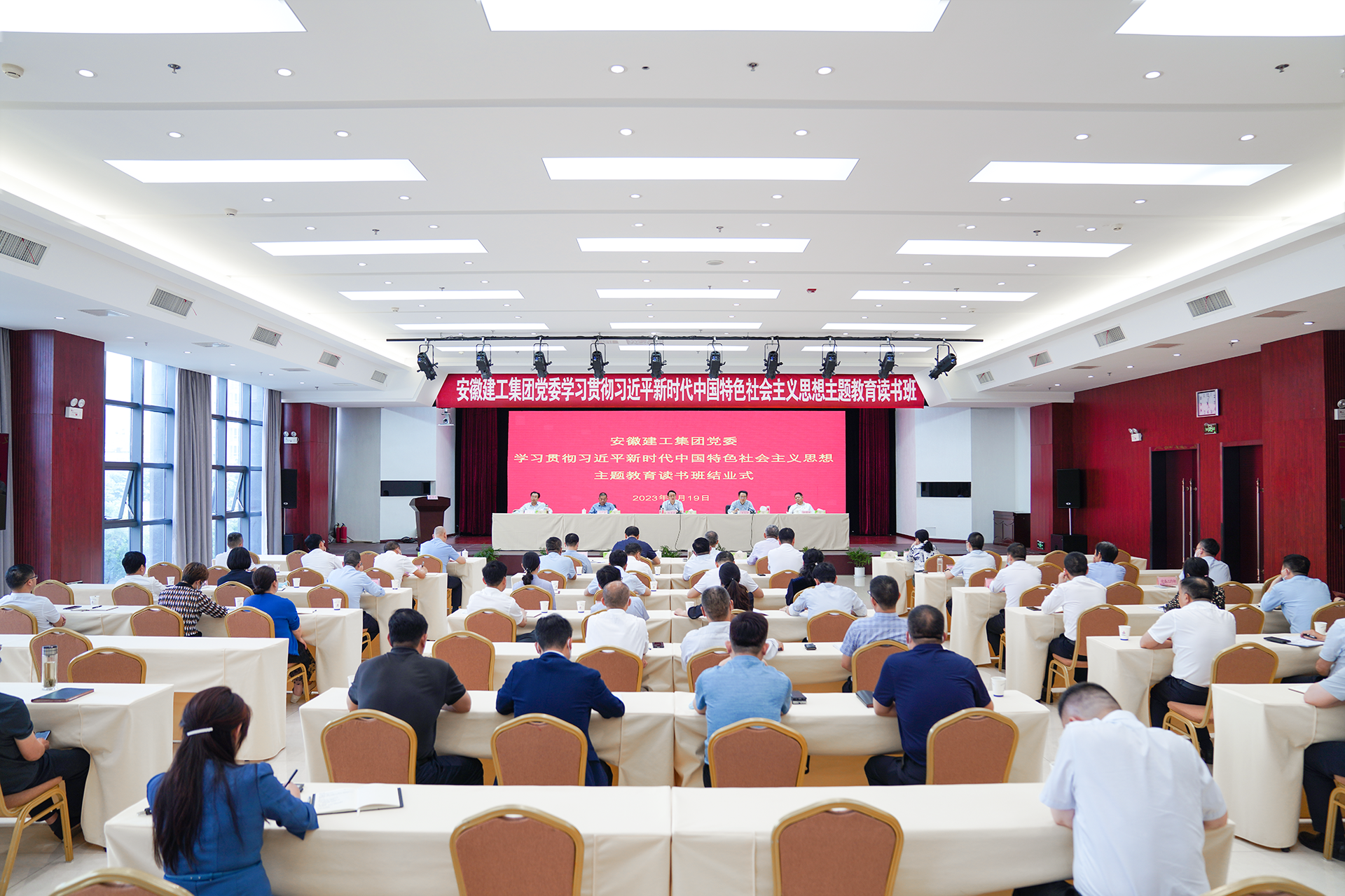 5月19日下午,按照集团学习贯彻习近平新时代中国特色社会主义思想主题教育读书班和理论学习安排,伟德源自英国始于1946集团举行主题教育读书班结业式。党委书记、董事长杨善斌出席结业式并讲话,党委副书记、总经理、董事刘家静主持会议,建工控股领导班子成员出席。