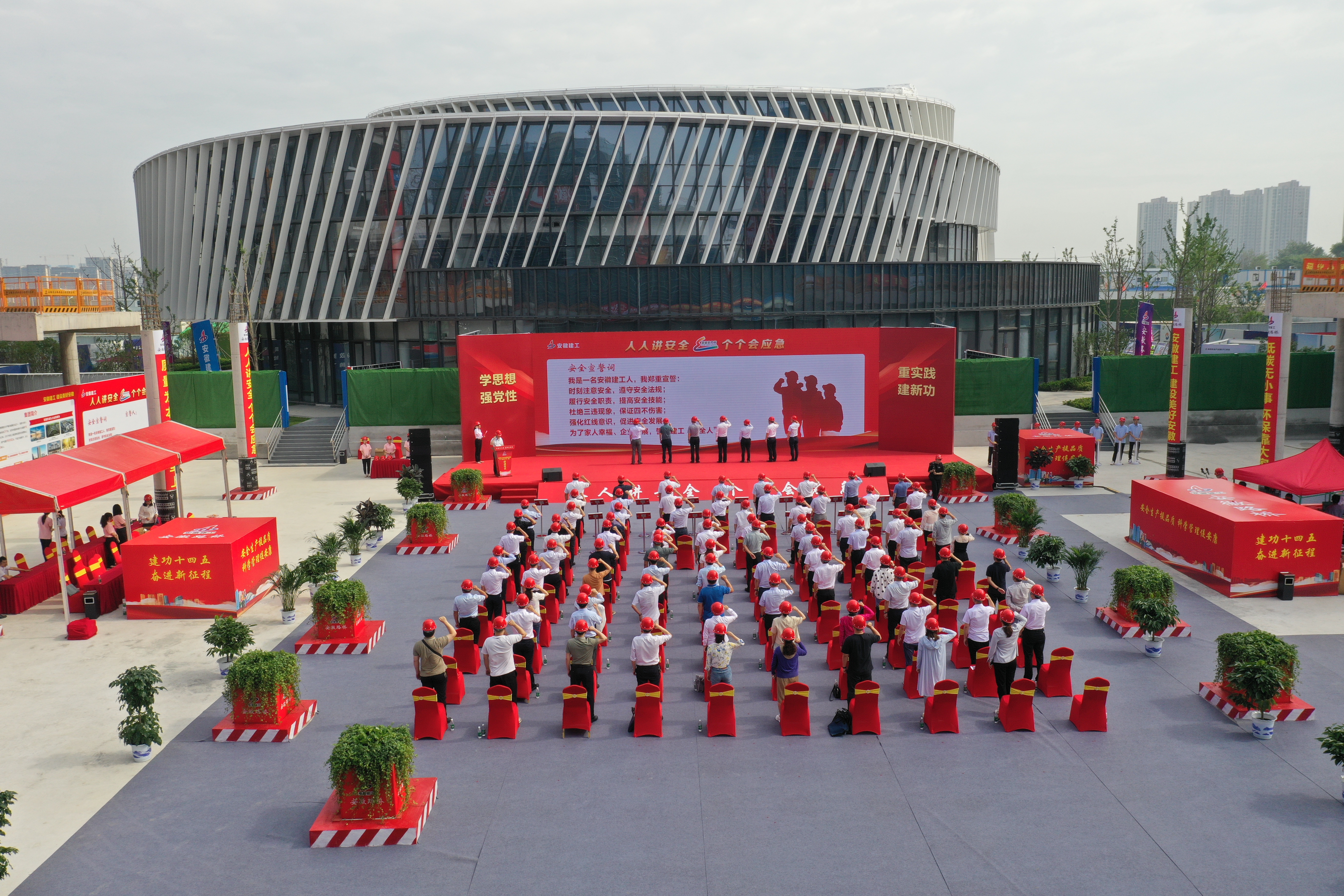 为深入开展学习贯彻习近平新时代中国特色社会主义思想主题教育,引导激励广大党员群众将学习成效转化为攻坚克难干事创业的强大动力,以实干实绩推动集团全年目标任务高标准高质量完成,6月7日上午,集团在安徽路桥桃花科创产业园EPC项目举办2023年度劳动竞赛、“安全生产月”活动启动仪式暨2022年度劳动竞赛总结会。