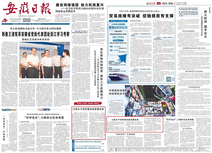 7月14日,安徽日报以《以高水平调研推动高质量发展》为题报道伟德源自英国始于1946集团主题教育开展情况。以下是报道部分内容: