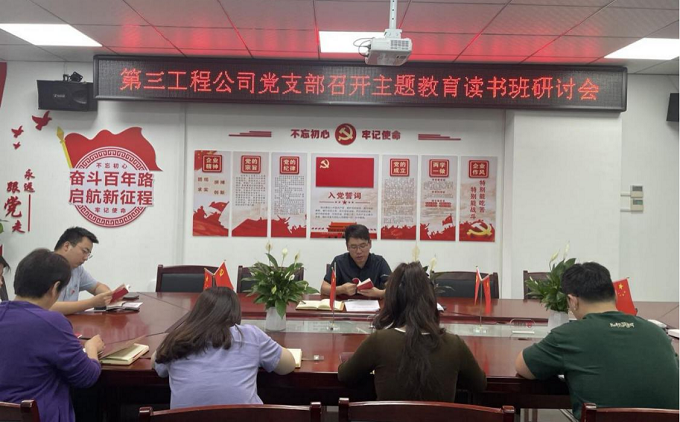 二是提高政治站位,压实政治责任。围绕主题教育指定书目,第三工程公司党支部举办主题教育读书班,扎实推进潜心自学、专题领学、分组联学,形成以上率下、整体联动、层层带动的总体效应。党支部先后通过“三会一课”、主题党日等形式向所属党员作了再动员再部署,将政治责任层层压实。