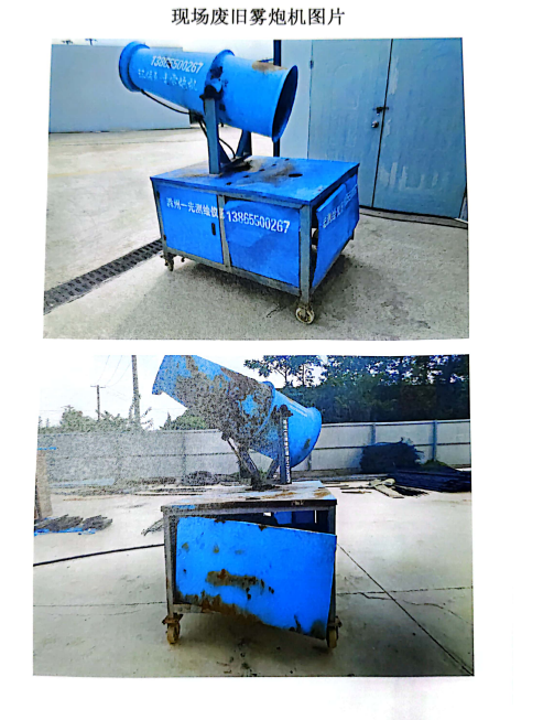 一、处置项目:废旧雾炮机两台(均为铁制品,已损坏无法正常使用。)
