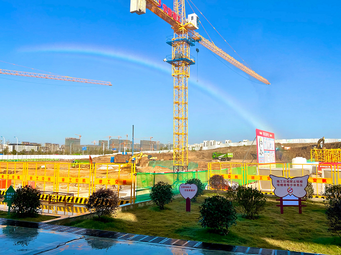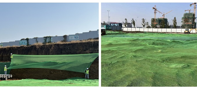 施工过程中,项目部以精细化管理为契机,积极推广使用节能新产品,助力节能减排、降本增效。一是严格落实绿色施工理念,合理布置现场规划,统筹考虑临时设施和永久性设施,有效优化施工工序,将施工过程中用到的部分临时设施与永久性设施一次性施工,达到降低碳排放、缩短工期、减少资源浪费的目的。二是严格按照标准要求配置现场设备,建设废水收集系统,配置冲洗平台、喷淋系统(围挡、高杆、塔吊)、作业区雾炮、大阳能路灯等设备,为项目绿色施工提供有力保障;三是严格执行裸土区域全覆盖举措,组织项目部管理人员对土方作业裸土区域铺设防尘网,累计铺设面积达到3.4万余平,有效降低扬尘污染。