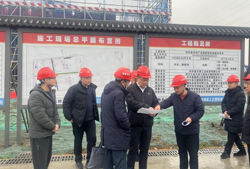 12月11日上午,利辛县县委书记张吉明一行赴我公司承建的利辛县双创产业园项目现场调研。