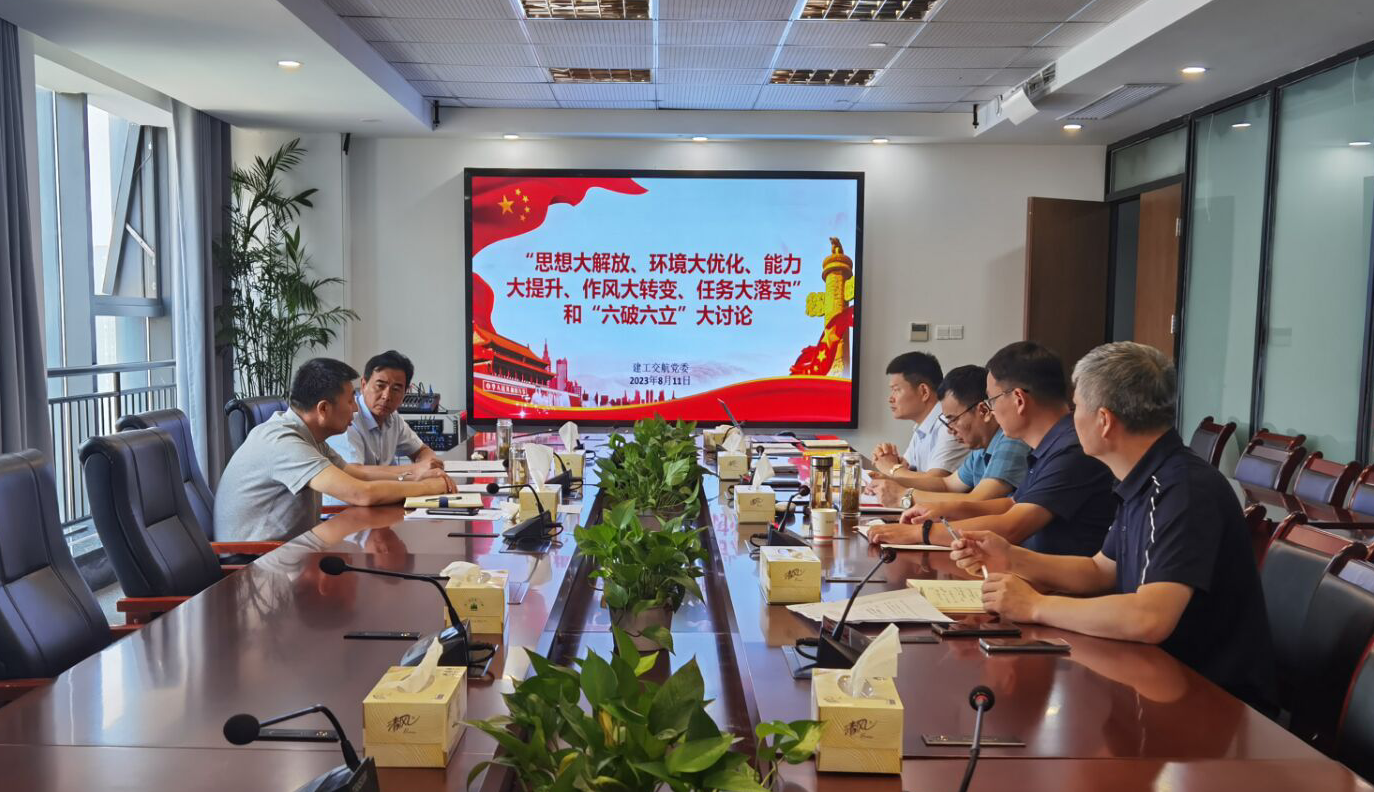 8月11日上午,建工交航党委对照“思想大解放、环境大优化、能力大提升、作风大转变、任务大落实”和“六破六立”,结合集团“大发展、转型发展、高质量发展”目标要求,认真开展动员部署、学习研讨,公司党委书记、董事长徐少华主持会议,公司领导班子成员参加会议。