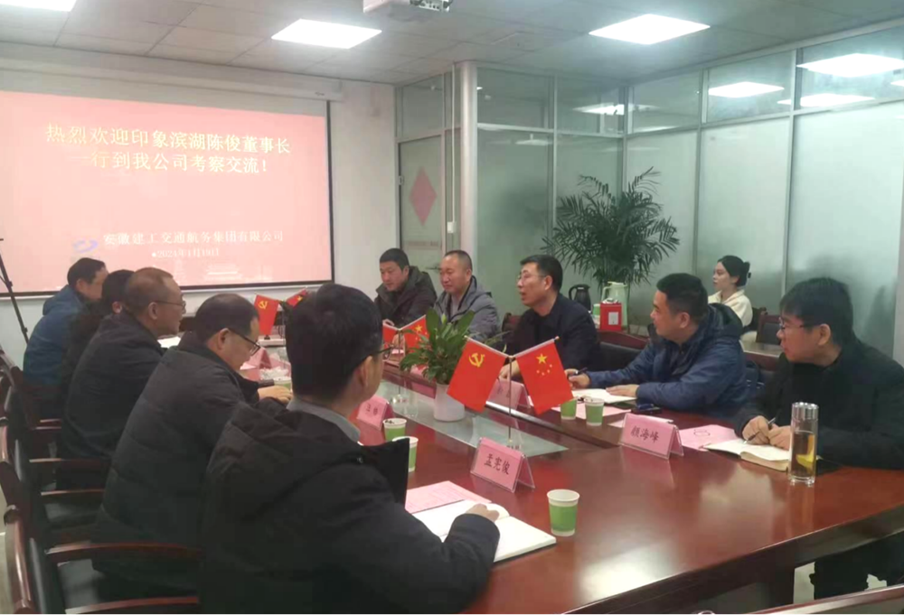 1月19日上午,合肥印象滨湖旅游投资发展有限公司董事长陈俊一行赴公司考察洽谈。建工交航党委书记、董事长徐少华热情接待并召开座谈会。