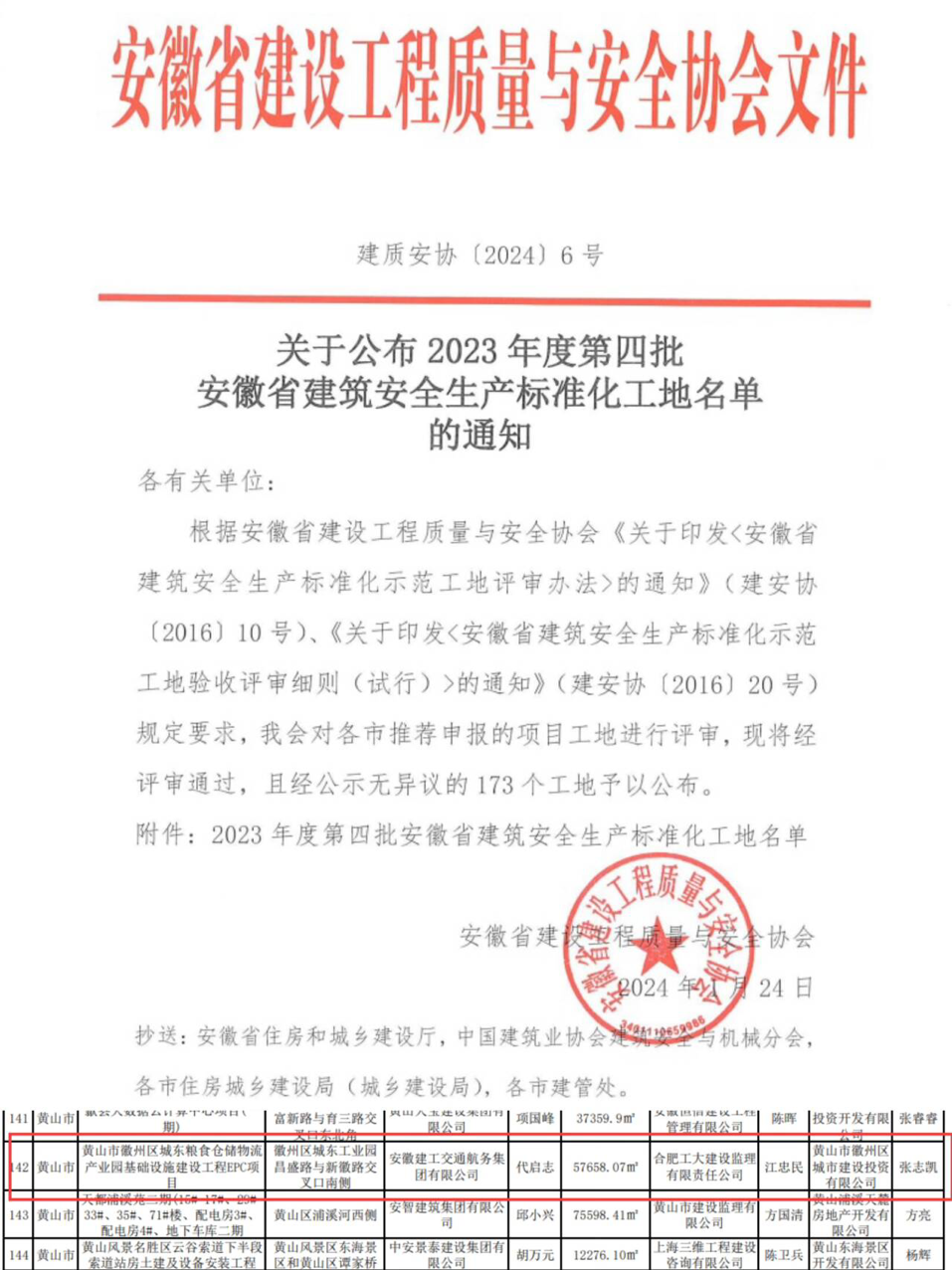 近日,由建工交航黄山分公司承建的城东粮食仓储物流产业园项目喜获“安徽省建筑安全生产标准化示范工地”荣誉称号。