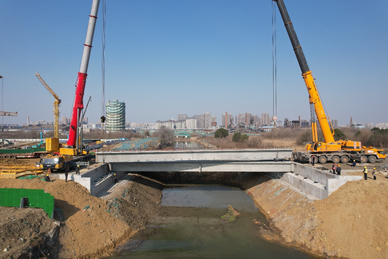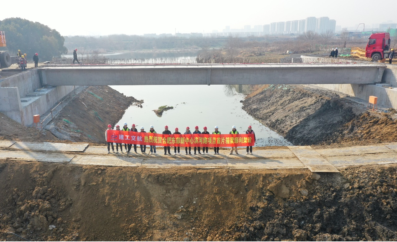 近日,合肥东部新中心滨河路道路工程施工5号河桥预制箱梁顺利完成架设,标志着项目施工迈入关键阶段。