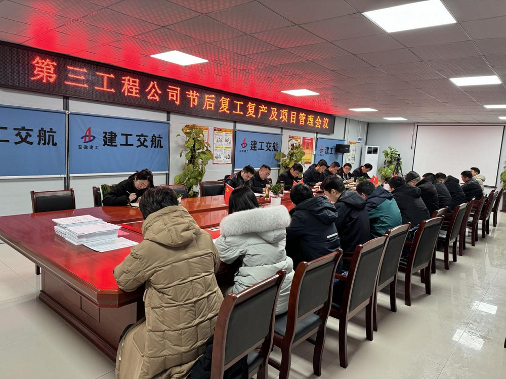 为号召全员迅速“收心归位”,快速进入工作状态,加快推进各项重点工作落地见效。2月21日上午,建工交航第三工程公司在青海路项目部召开节后复工复产暨项目管理会议。