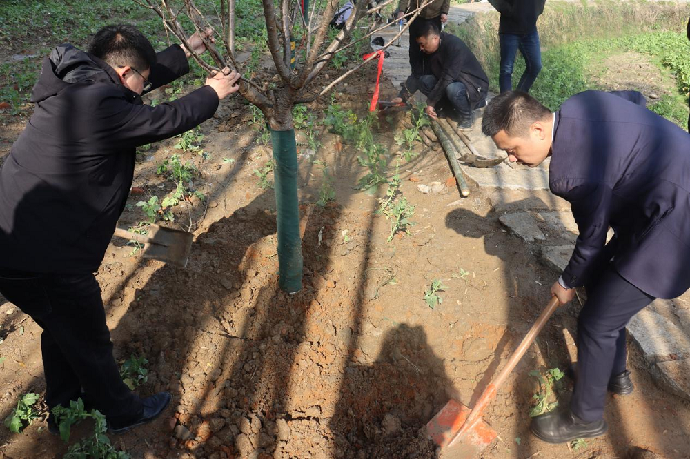 活动现场,大家根据技术要点抬树入坑、扶正树苗、挥锹培土、夯土踩实,相互配合,共同协作,呈现出一片热火朝天的劳动景象,合力栽种的一棵棵新树苗迎着春风、沐着暖阳,为项目增添勃勃生机。