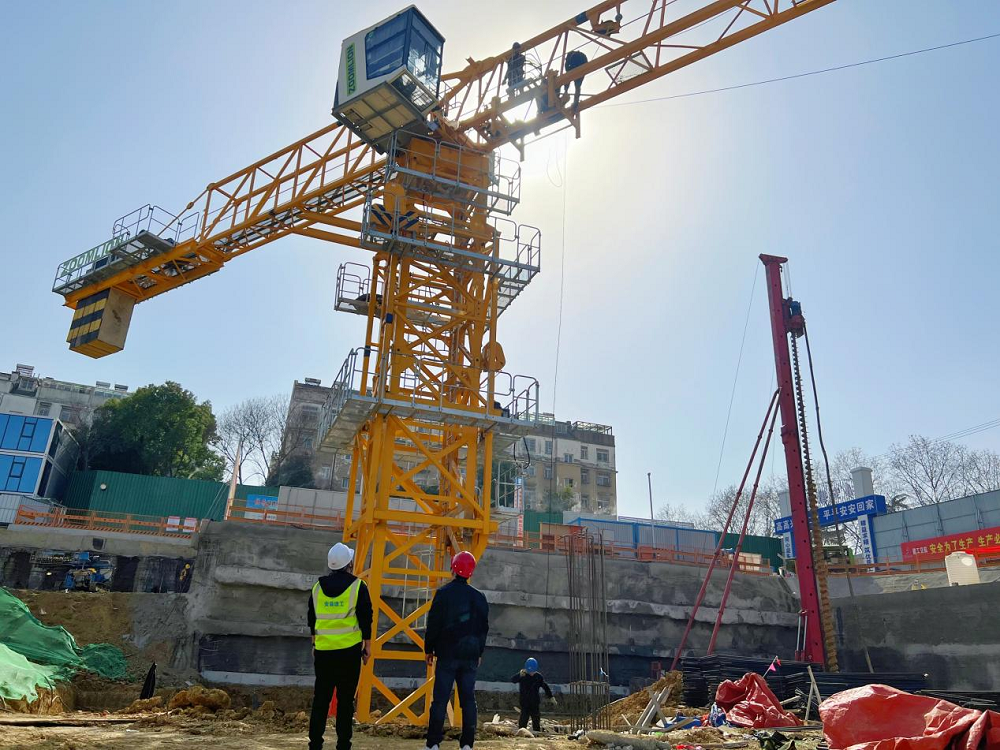首台塔吊设备的投入使用,提高了项目材料运输效率,为接下来地下室、地面主体楼层钢筋、模板、方木等施工物料输送提供了极大便利,对加快项目施工建设起到良好的推进作用。