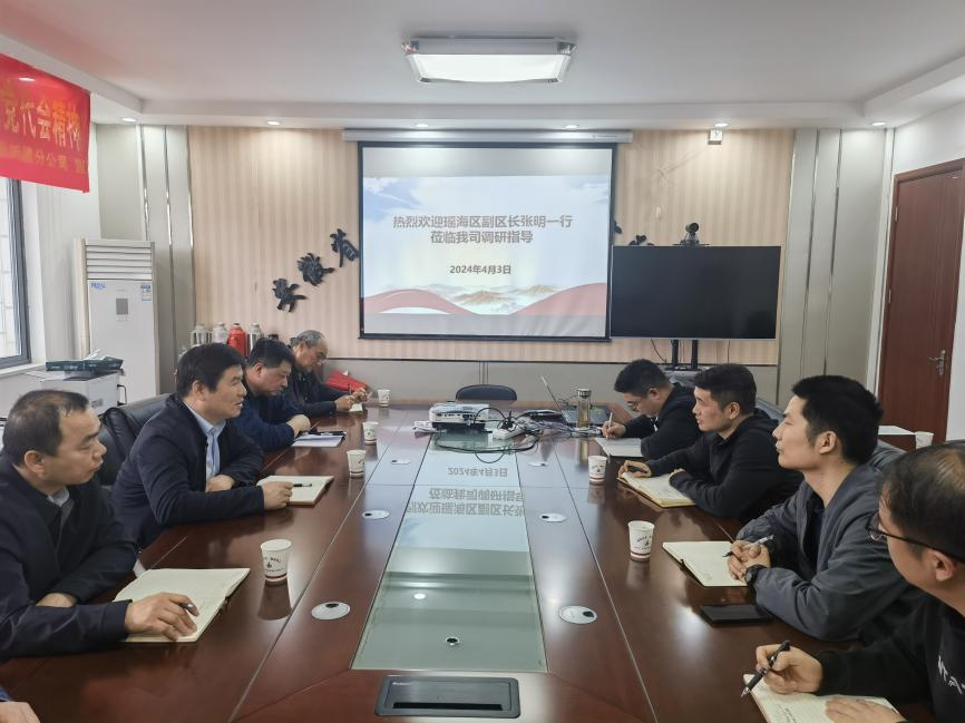 4月3日下午,瑶海区副区长张明一行到城建分公司调研指导工作。瑶海区住建局、城东街道有关同志,城建分公司领导班子成员参加调研。