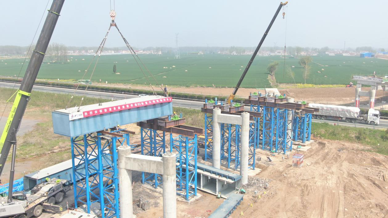 4月8日,一块长17.38米、重46.45吨的“钢铁巨兽”稳稳的落在徐淮阜高速宿州段路基工程02标孙圩子互通GK1+275.5匝道桥的支架上。该钢箱梁吊装完成标志着项目正式进入钢箱梁快速施工阶段。