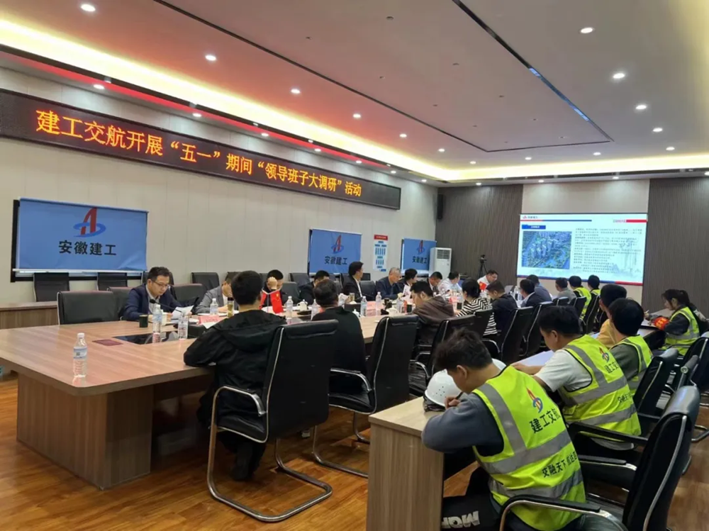 公司领导吴继成、管伟胜、王黎明、邢磊在调研中分别就分管领域工作进行调研,公司工程管理部、投资和市场开发部、成本合约部、党群工作部及综合办公室负责人对集团、公司的相关重要制度进行宣贯并和分子公司和项目部进行交流沟通,城建分公司、交建分公司、皖北分公司、生态公司领导班子和部分重点项目领导班子参加调研。