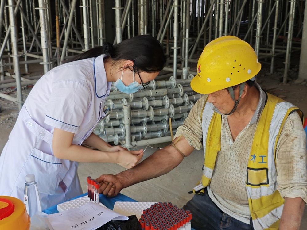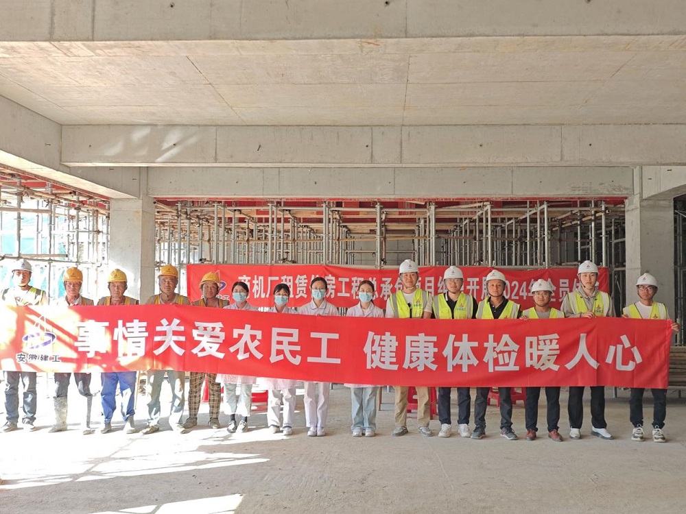 为落实安全生产工作要求,切实保障一线工人的身体健康,5月17日下午,商机厂租赁住房项目部开展了以“事情关爱农民工,健康体检暖人心”为主题的体检活动,邀请医护人员走进工地,为现场工人进行一次全面、免费的健康检查,用实际行动传递温暖。