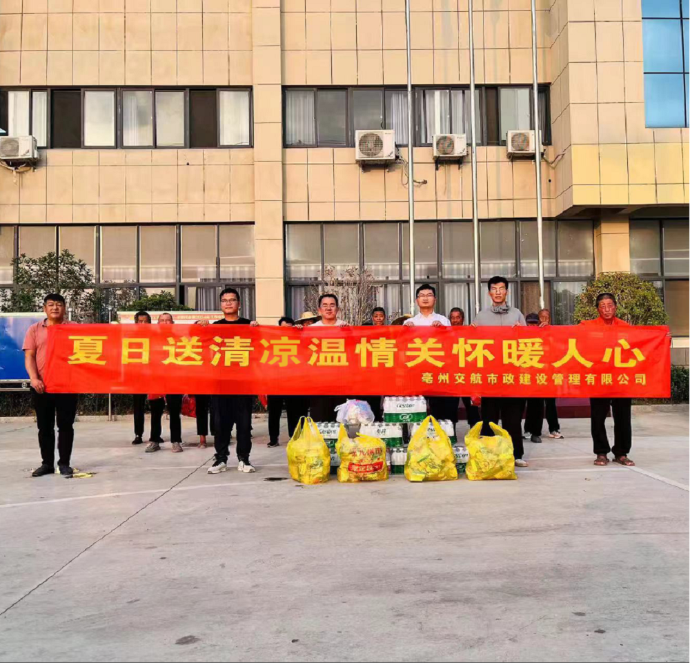天气炎热,户外高温环境作业十分艰苦,皖北分公司给一线作业人员发放了西瓜、饮用水、毛巾和防中暑药品等防暑降温物资,感谢他们冒着酷暑坚守岗位,叮嘱他们注意自身健康和劳动安全。