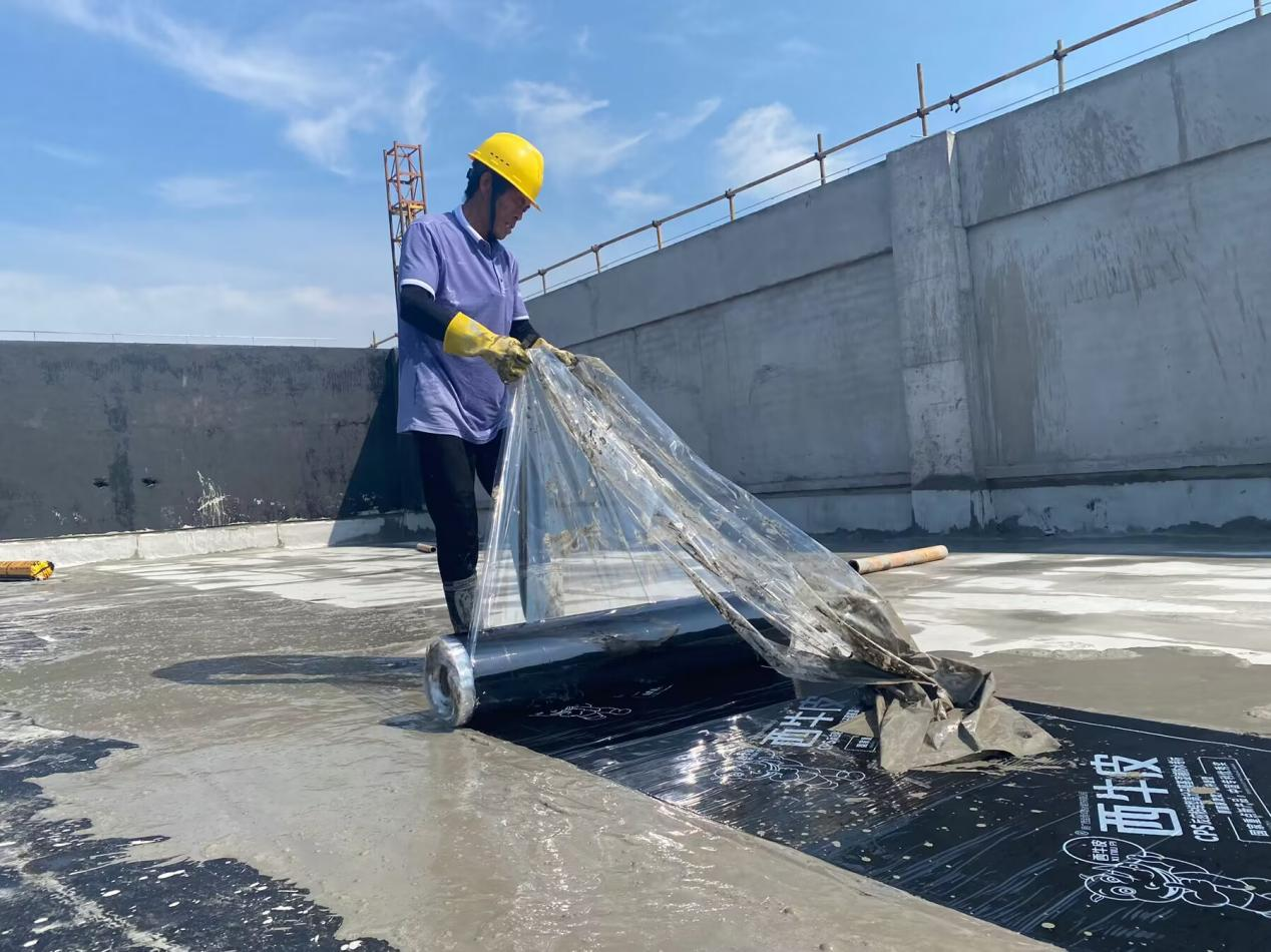 ▲黄山徽州区城东仓储物流产业园-铺设防水卷材
