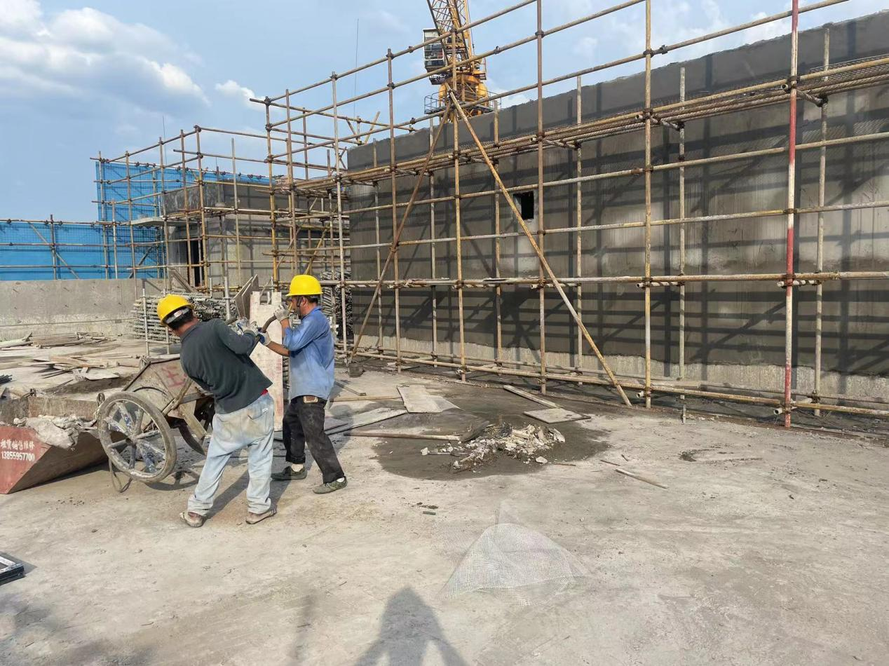 ▲合肥蜀山区七水厂三期工程施工项目2#-活性炭滤池管廊二次结构浇筑、顶板抹灰施工