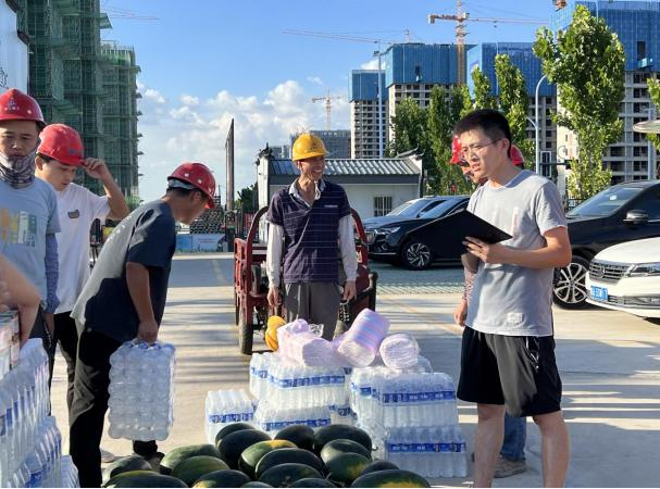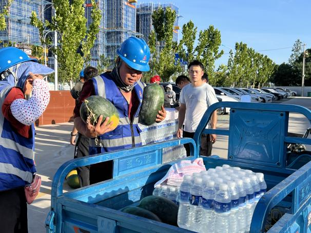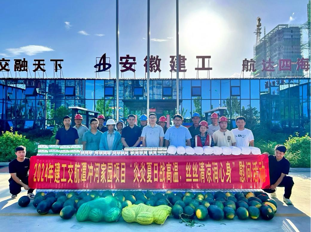 7月25日下午,建工交航潭冲河家园项目联合业主、监理单位开展“炎炎夏日战高温,丝丝清凉润心身”慰问活动。