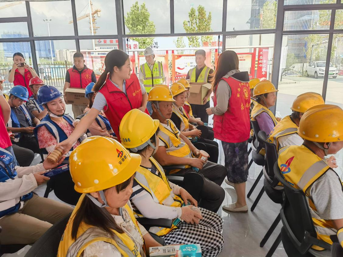 活动中,志愿者组织好现场的工友代表进行集中宣讲,将党的二十届三中全会精神与工友的工作生活结合起来,用通俗易懂的语言讲述教育、医疗等惠民政策,让党的声音深入百姓心中。志愿者还对在场工友开展安全教育宣讲,重点对消防安全、用电安全等内容进行细致讲解,对高处作业和交通安全等方面进行宣传培训,使工友了解作业中正确的防护措施,有效提高了工友的安全生产防范意识。随后,志愿者将一份份精心准备的中秋慰问品送到工友手中,向他们表达节日的慰问,并叮嘱大家务必保障自身安全,确保项目安全生产、有序施工。