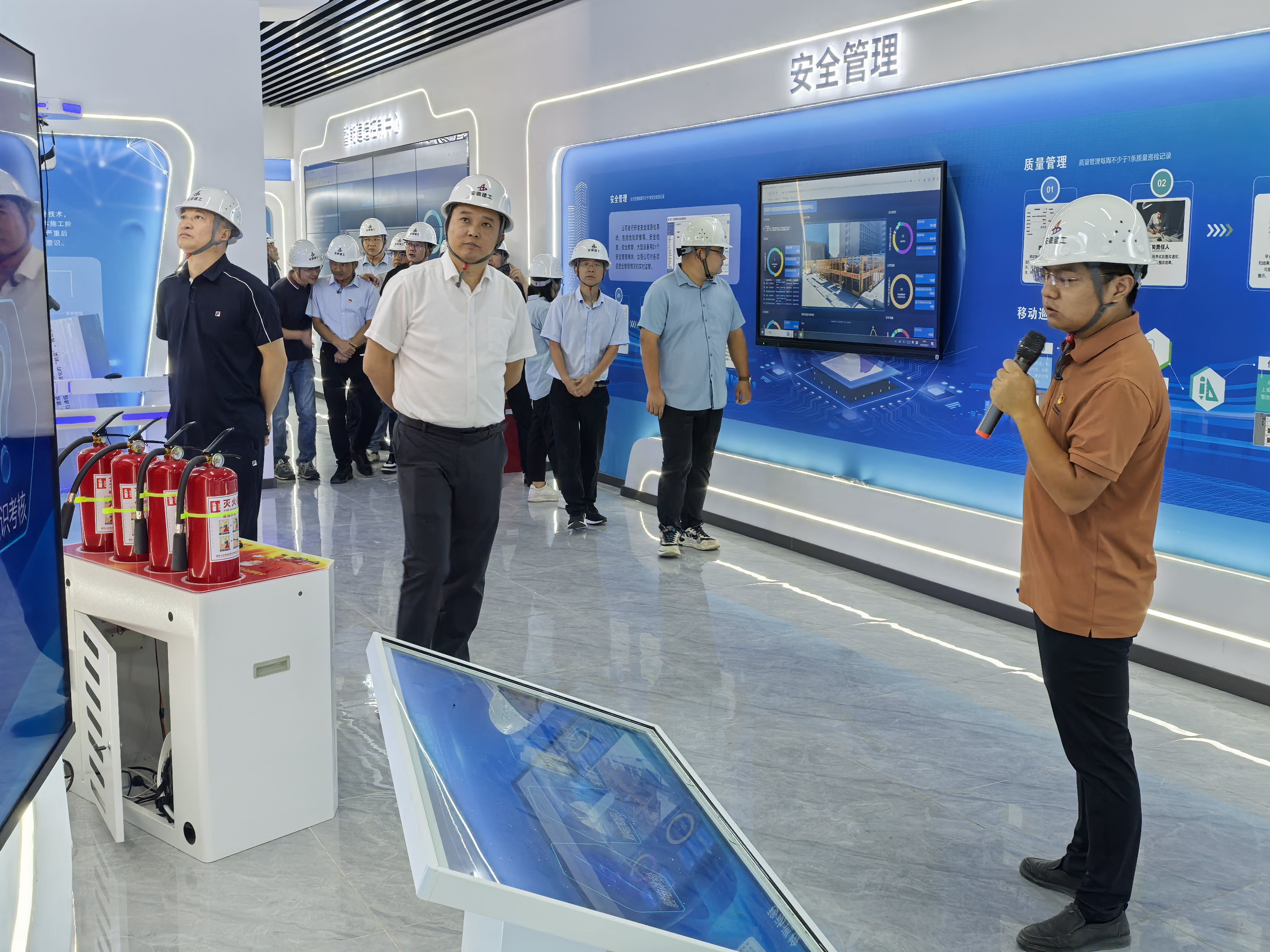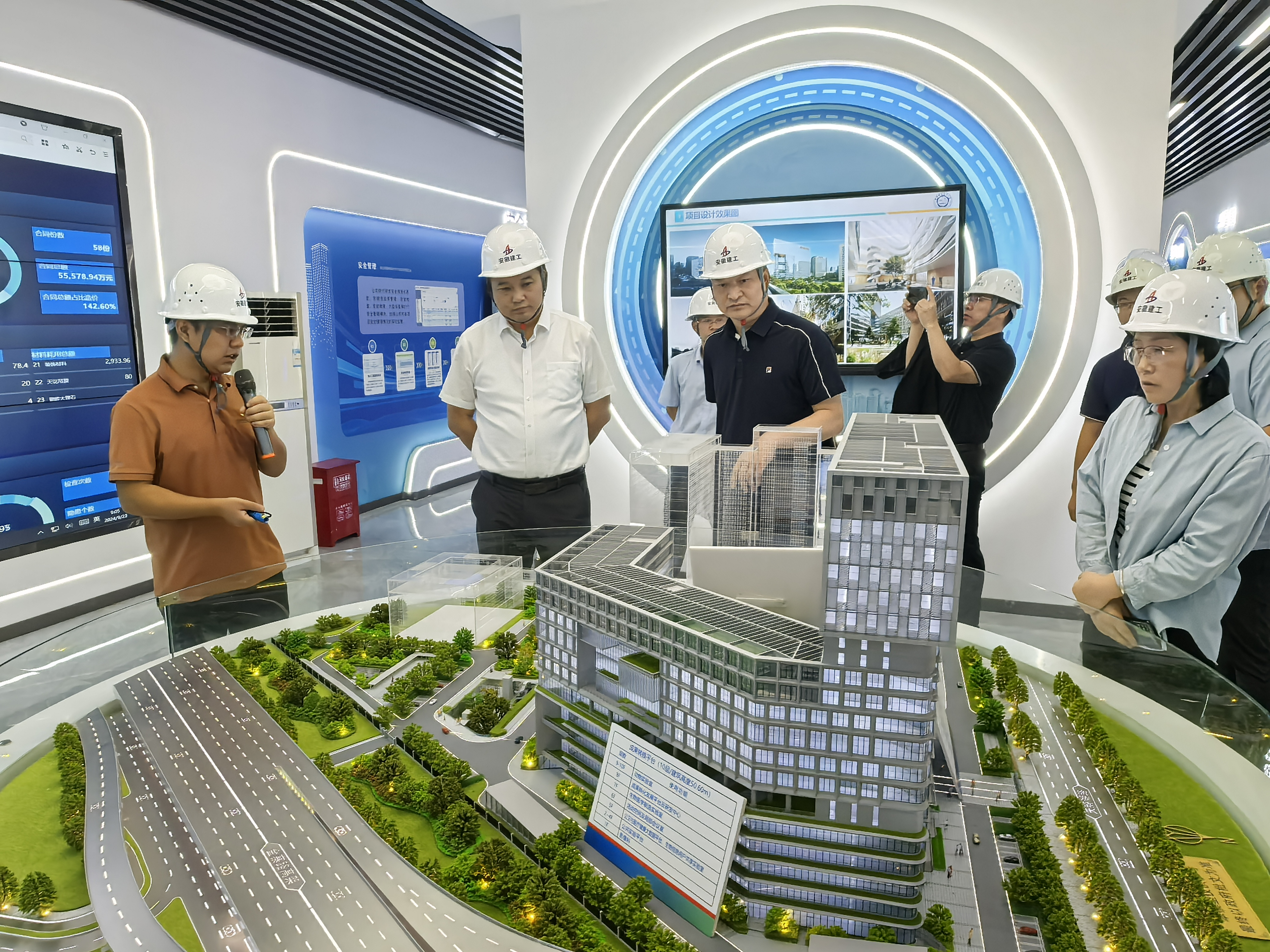 随后,项目相关负责人对项目工程质量目标、重难点、质量管理要点、智慧建造、科研技术创新等方面进行了详尽分享。双方就工程创新创优、安全管控、成本、招标管理等方面进行了深入的交流探讨。