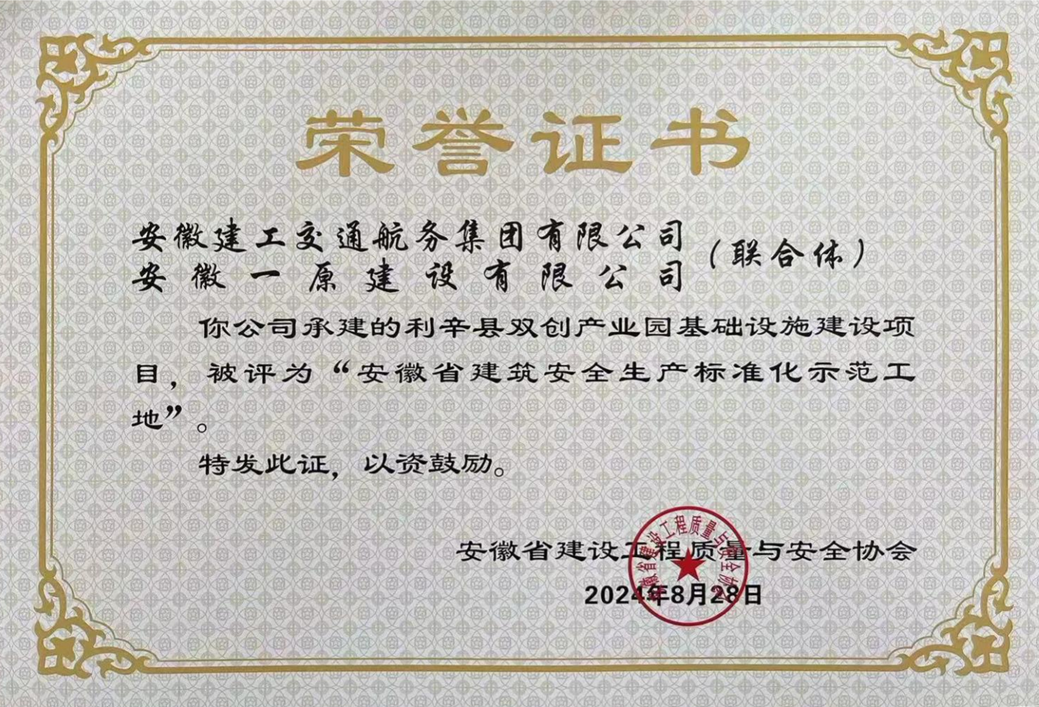近日,安徽省建设工程质量与安全协会公布了2024年度安徽省建筑安全生产标准化示范工地公示名单,亳州市住房和城乡建设局公布了关于公布2024年第一、第二季度亳州市建设工程施工质量标准化示范工程(小区)公示名单,利辛县双创产业园项目均脱颖而出,成功获此殊荣。