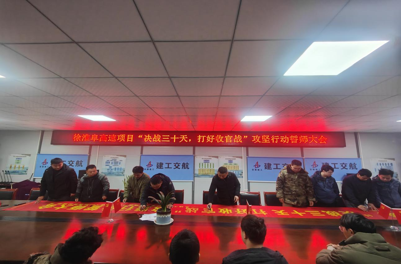 12月23日,徐淮阜高速项目召开“决战三十天,打好收官战”誓师大会,为打赢项目收官之战,制定专项工作方案,列明重点工作,争分夺秒抓进度,计划有序强落实,安全质量不松懈,施工断点强推进,责任主体我先行。