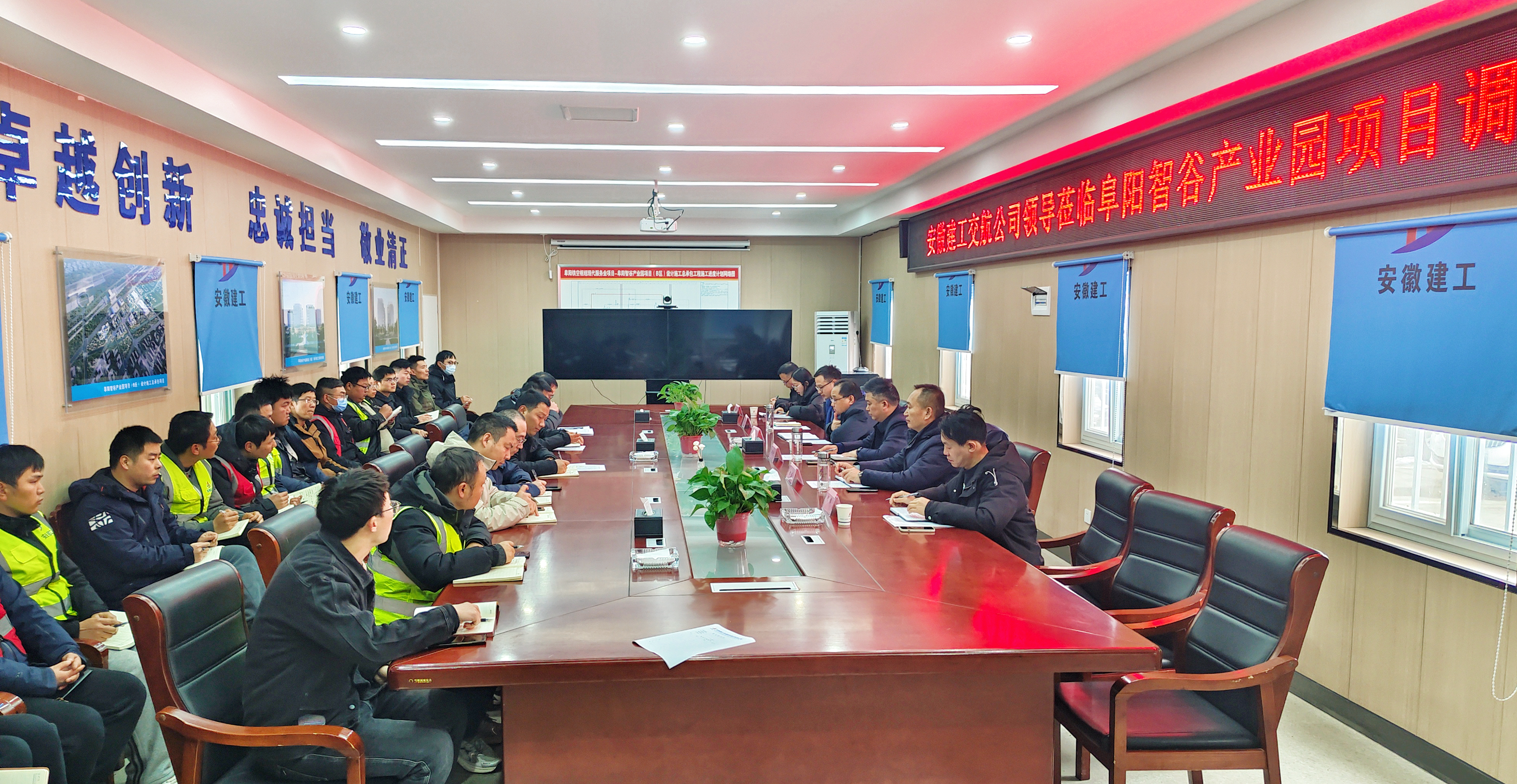 公司领导侯田汉、邢磊,工程管理部、安全环保监察部、党群工作部(人力资源部、团委)负责人,阜阳智谷项目全体人员参加会议。
