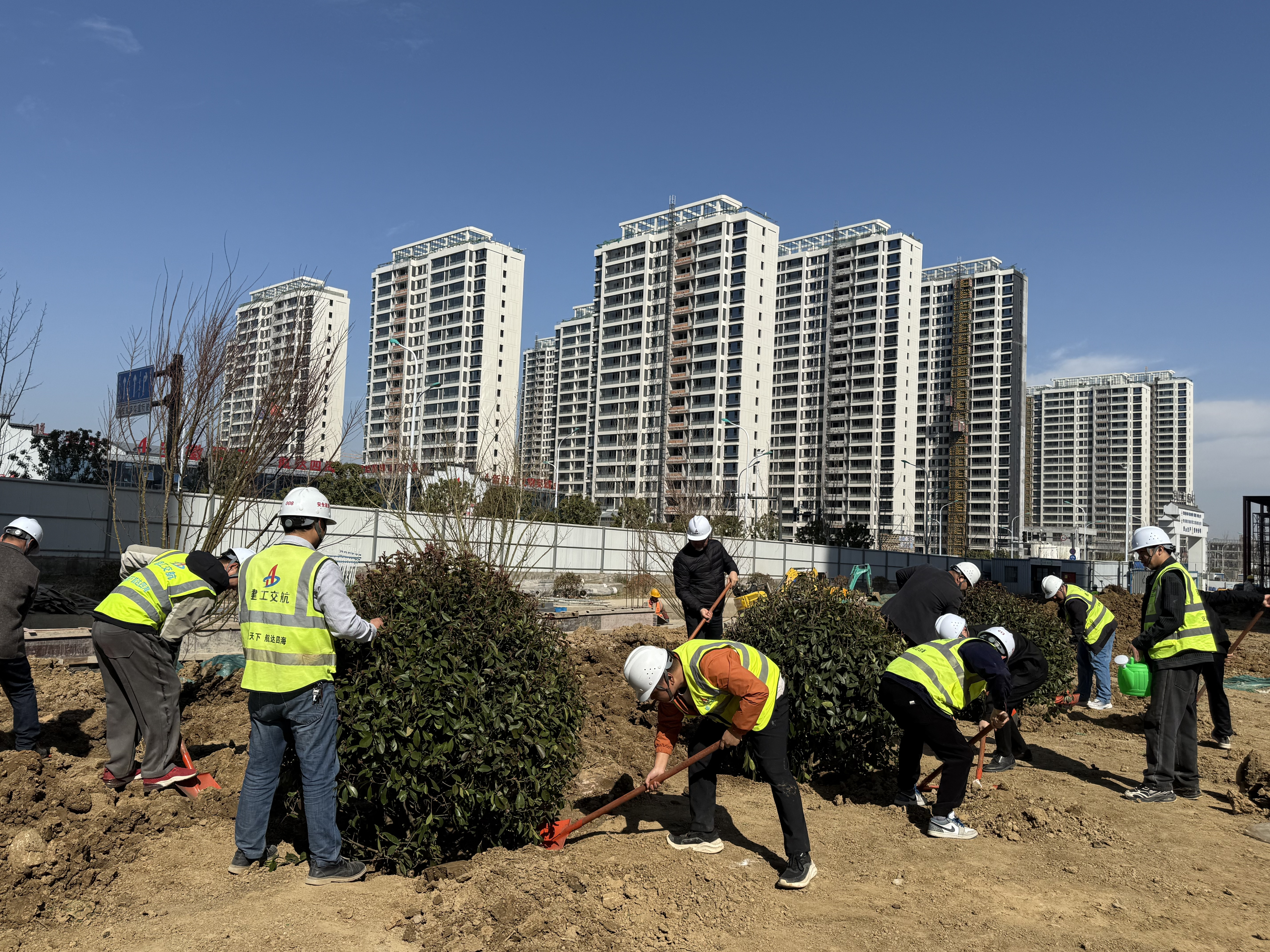 活动现场,参与人员分为 5 个植树小组,在潭冲河家园项目公共绿化区域开展劳动实践。大家分工协作,挥锹铲土、扶苗填坑、提水浇灌,每个环节都细致认真。经过几个小时的辛勤劳动,几十株树苗在春日暖阳中扎根,形成一道靓丽的绿色风景线。