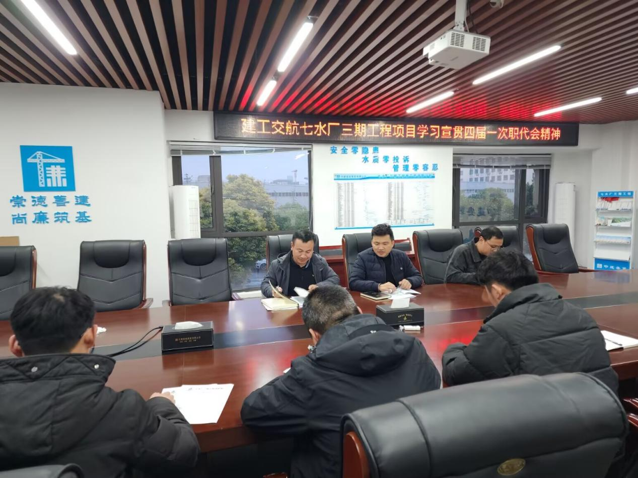 近日,七水厂三期项目积极行动,召开学习会,传达学习宣传贯彻两级职代会精神。会议要求全体职工深学细悟,以两级职代会精神为指引,强化责任担当,狠抓会议落实,聚力攻坚项目年度目标任务,以实干实绩推动会议精神落地见效,为企业高质量发展注入强劲动能。