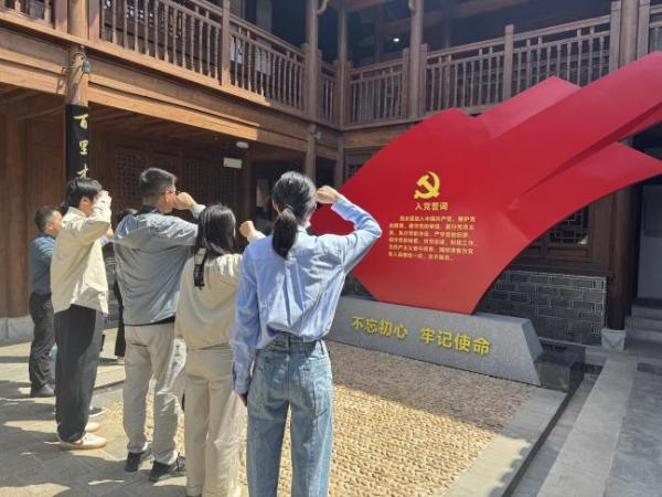 活动期间,全体党员沿着习近平总书记的足迹走进六尺巷。在 “礼让” 与 “懿德流芳” 石牌坊前,党员们驻足聆听讲解员讲述 “一纸书来只为墙,让他三尺又何妨” 的历史典故,感受其中蕴含的智慧与美德。随后,党员们参观了六尺巷廉洁文化陈列馆,深入了解中国廉洁文化的发展历程,近距离领略廉洁文化的深厚内涵。观展结束后,全体党员面向党旗庄严宣誓,重温入党誓词,回顾入党初心,坚定理想信念。